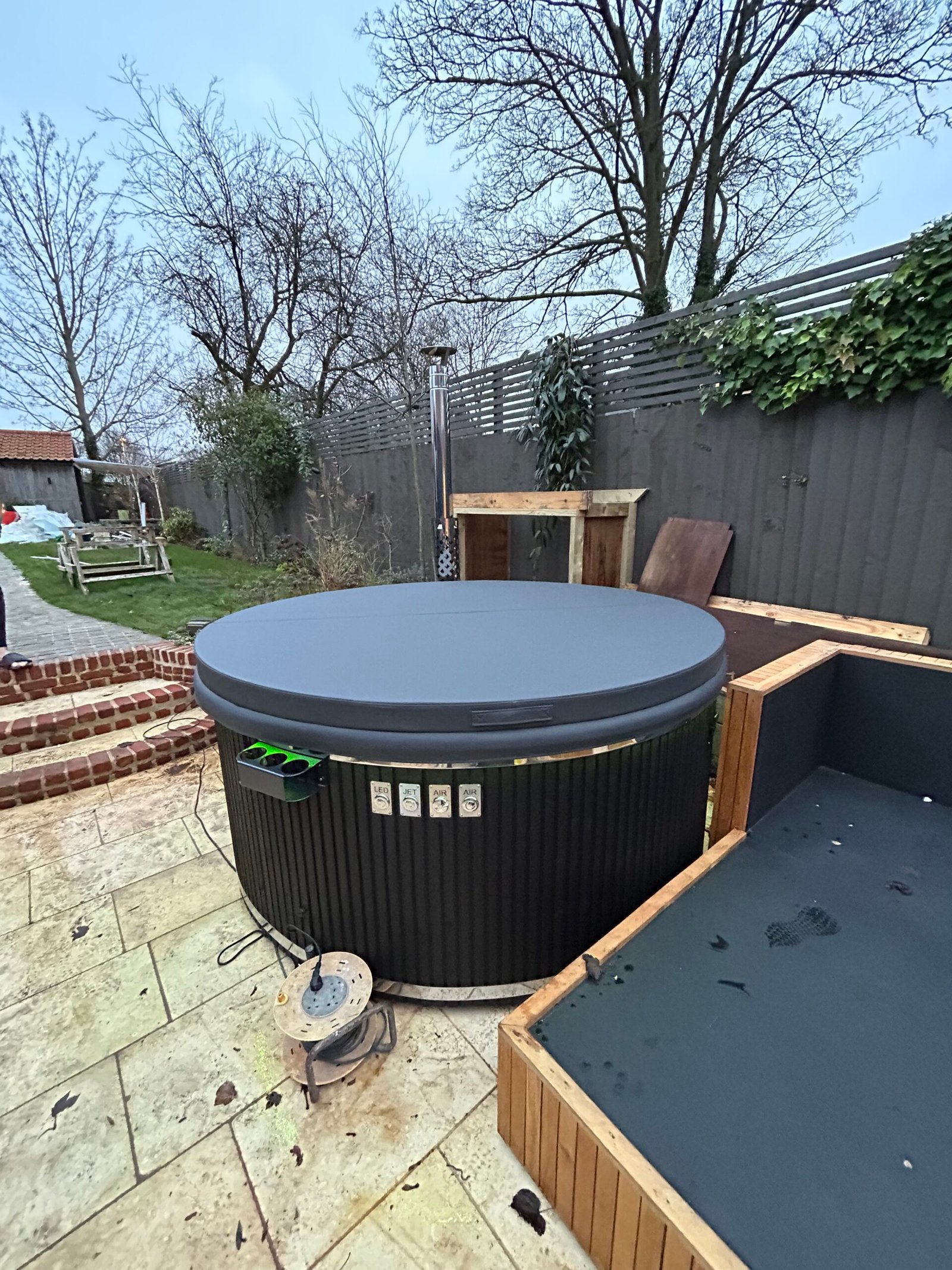 At the heart of the VIVORA lies a stainless steel wood-burning oven with a flue, providing efficient and sustainable heating. This impressive system allows you to enjoy warm, soothing waters quickly, without the long waiting times typically associated with hot tub heating. Embrace the rustic charm of wood-fired heating while contributing to a more eco-friendly lifestyle.